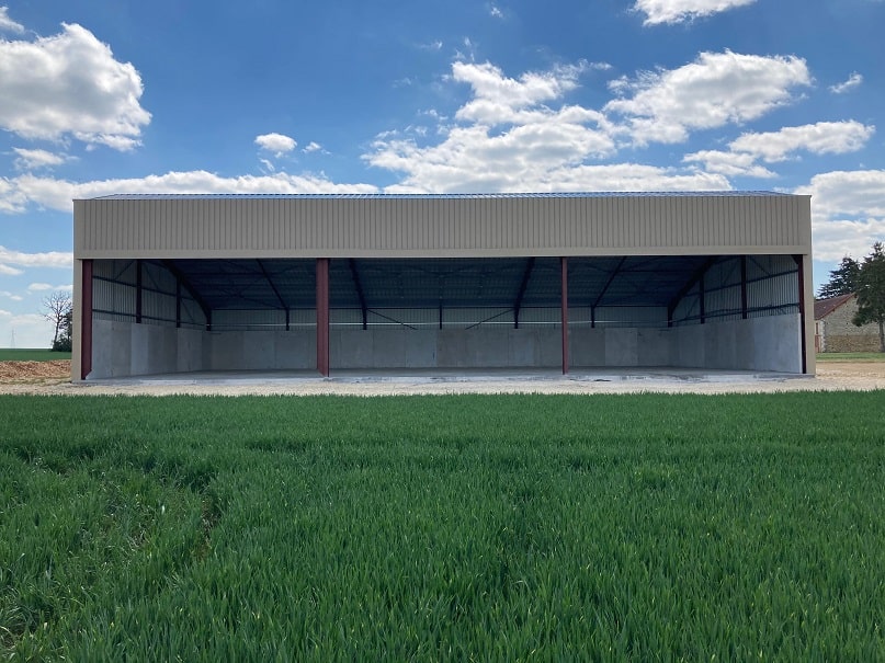 Construit en 2020, ce hangar solaire recouvre une surface de 734 m². La charpente métallique du bâtiment a été fabriquée en France, à Morée dans les ateliers du Triangle. Celle-ci supportera la toiture photovoltaïque d’une puissance de 100 kWc. Les panneaux photovoltaïques génèrent une électricité d’origine renouvelable. La vente de l’électricité verte est encadrée par un contrat d’obligation d’achat avec EDF pour une durée de 20 ans. Grâce à la vente de cette dernière, M. Robert obtient un gain annuel charges déduites d’environ 11 350 €. Cela lui permettra d’amortir son hangar photovoltaïque en moins de 20 ans.