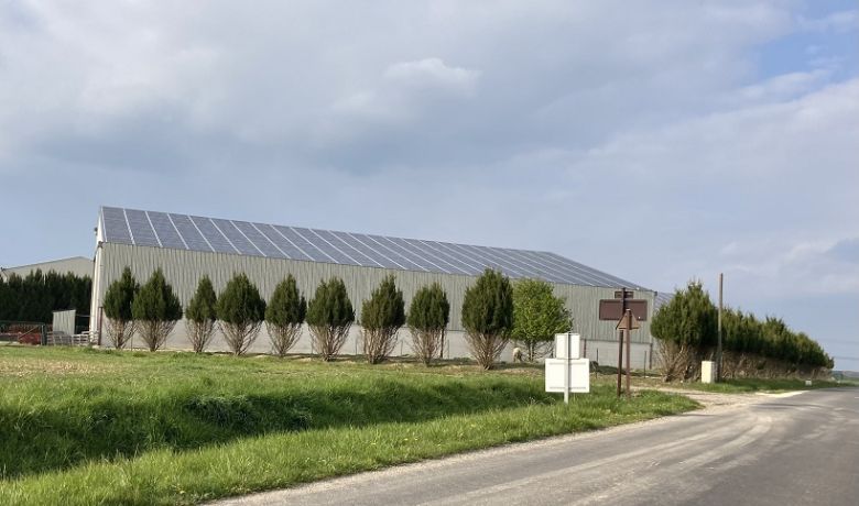 Ces deux bâtiments d’une surface de 800 m² chacun en Seine-et-Marne permettent à M. Marot de stocker ses céréales à plat. Le projet datant de 2016, pour un bâtiment photovoltaïque de 800 m², a eu un coût d’investissement de 194 000 € HT, comprenant le coût du raccordement avec un transformateur à environ 100 m. Cela permet à cet agriculteur de générer un gain de 12 500 € HT charges déduites grâce à la revente d’énergie verte. Ainsi, il fournit environ 20 foyers de la commune de Saint-Just-en-Brie en électricité.