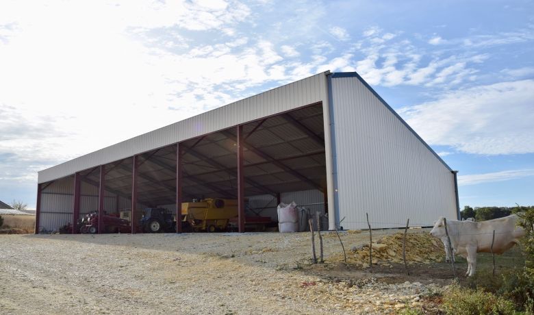 Ce bâtiment d’une surface de 700 m² dans l’Indre permet à M. Plisson de stocker son matériel, du grain et des céréales.