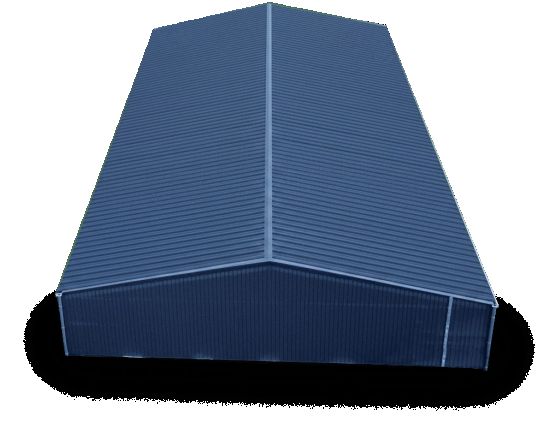 SymétriqueLe bâtiment solaire symétrique (1749-2385 m²) est conçu pour une exposition Est-Ouest, idéale lorsque l'orientation plein sud n'est pas envisageable. Des poteaux intermédiaires soutiennent le faîtage et renforcent ainsi la structure du hangar.