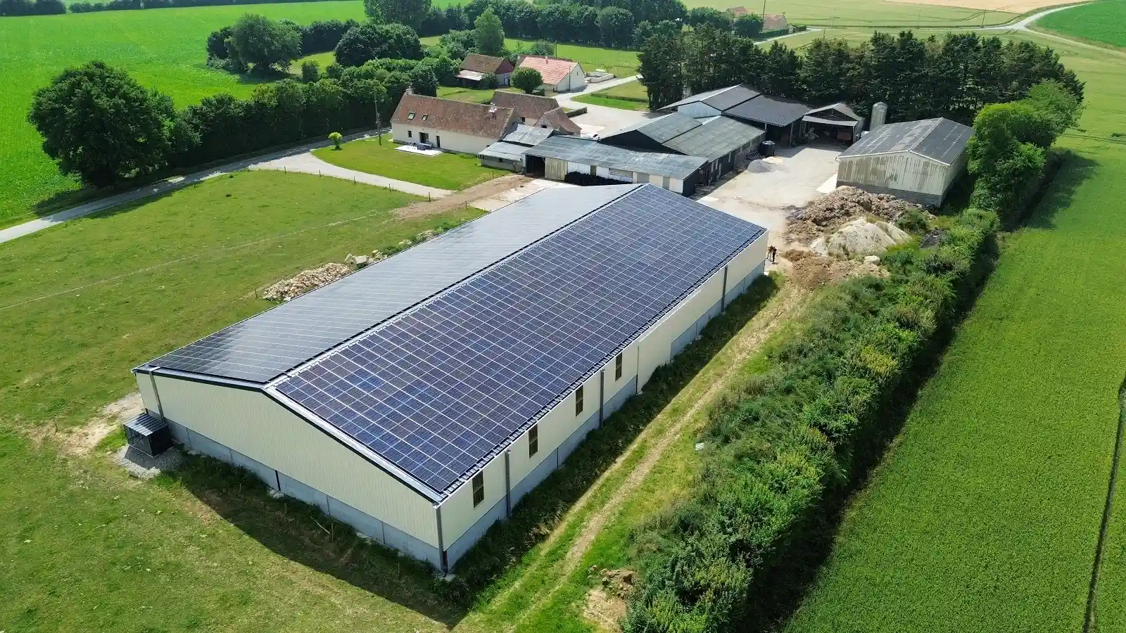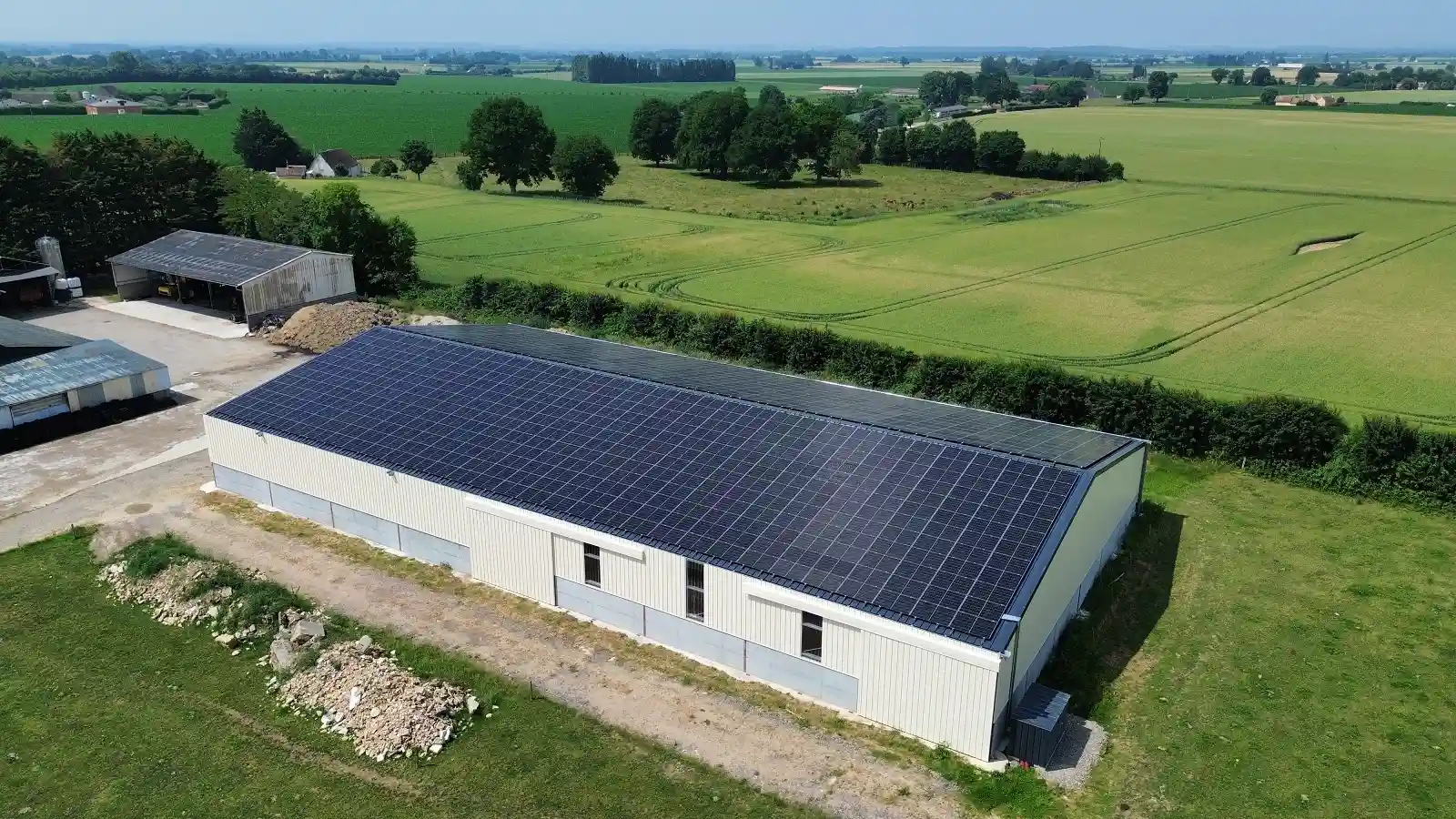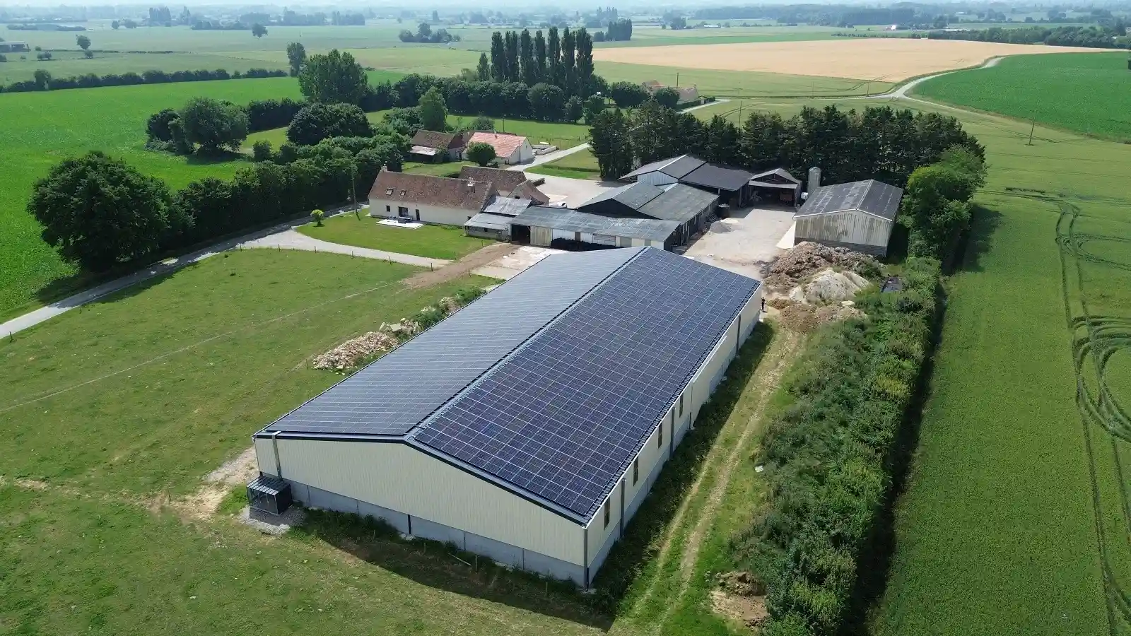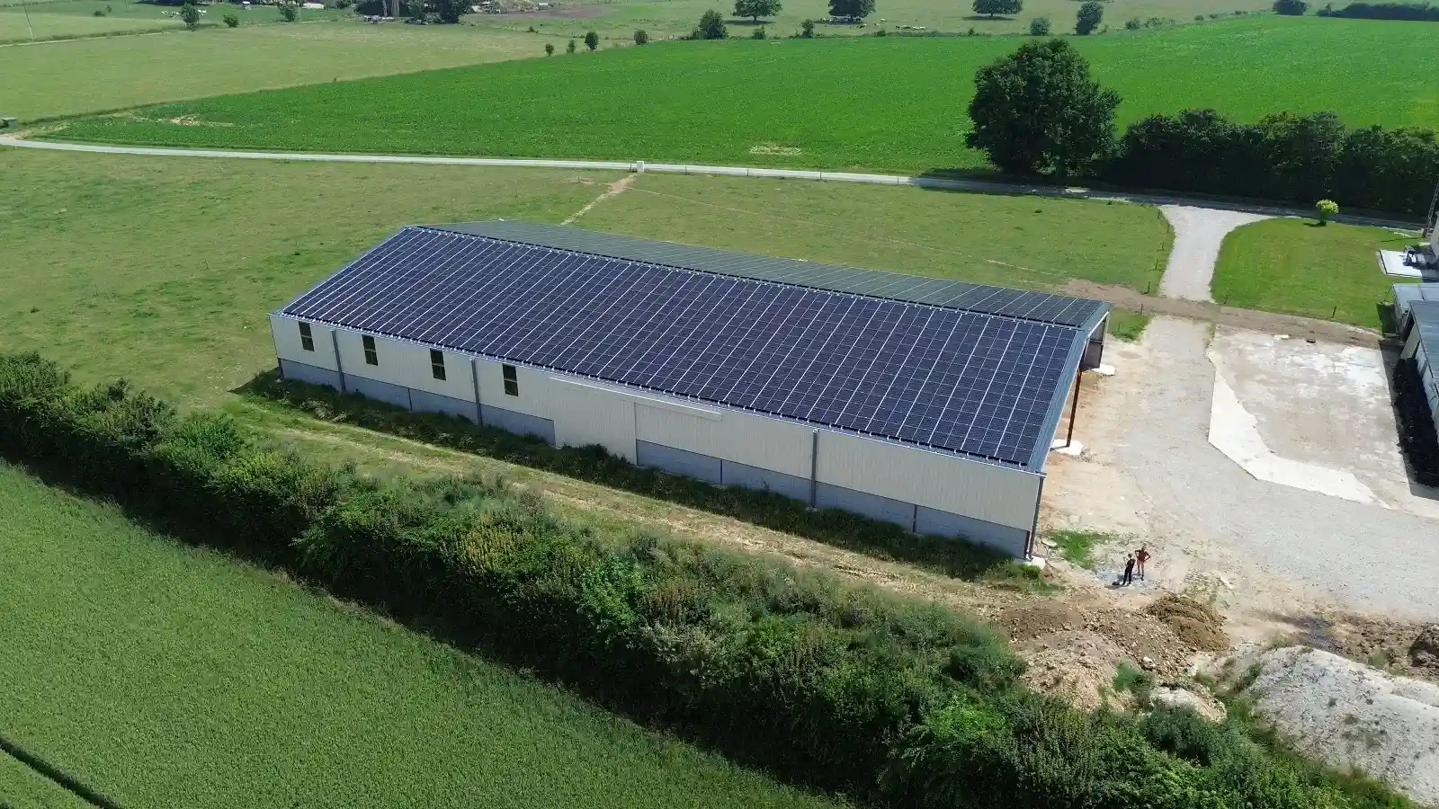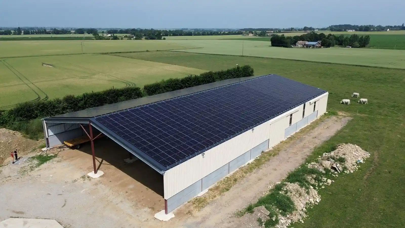 Ce bâtiment photovoltaïque de 1555 m² permet à notre client, exploitant agricole en polyculture-élevage, de stocker sa paille, son fourrage ainsi que son élevage bovin dans sa stabulation. La centrale photovoltaïque est orientée Est-Ouest pour profiter du soleil tout au long de la journée. Elle permet à cet agriculteur de financer son bâtiment et de produire une énergie propre.