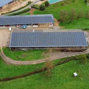 Rénovation de toiture : 427 kWc de photovoltaïque installés sur deux hangars agricoles en Saône-et-Loire. En valorisant ses infrastructures existantes, notre client, polyculteur et éleveur, bénéficie d’une toiture rénovée et d’une production d’énergie solaire qui renforce la durabilité et la rentabilité de son exploitation.